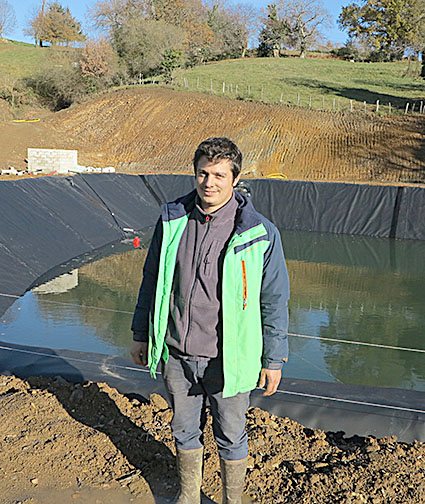 Installé en GAEC avec son frère sur une exploitation laitière complétée par la production de melons, potimarrons, buternuts et colza semence, Frédéric Deilhes a besoin d’eau pour sécuriser ses cultures « L’irrigation est indispensable à notre exploitation et nous avons décidé de créer un nouveau lac individuel de 13000 m³ environ avec un réseau d’eau enterré pour rationaliser et sécuriser toutes nos productions. Nous avions lancé un premier projet sur un site très propice mais il a été classé en zone humide par l’administration, ce qui a condamné le projet. Nous avons donc été contraints de changer de lieu pour ce nouveau lac de 4500 m². Il a fallu réaliser une nouvelle étude technique du sol et remonter un dossier administratif assez complexe. Le bureau d’études a du répondre à toutes les questions de l’administration et justifier tous les choix. Nous avons finalement obtenu l’autorisation en février 2021. J’ai choisi l’entreprise de travaux publics d’Alexandre Trezières de Saint Paul-Flaugnac, spécialisée dans la création et le curage de lacs collinaires, pour le réaliser. Ils sont venus effectuer les travaux du 15 septembre au 15 octobre. Le lac est donc terminé et en train de se remplir. Quant au matériel de pompage et de canalisation, je l’ai déjà commandé et il sera mis en place au printemps 2022. Nous souhaitons être opérationnels pour l’été prochain…»[/box]