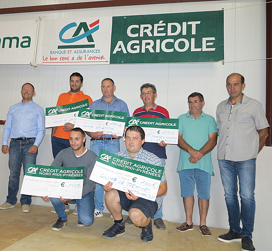 Cette rencontre fût l’occasion de remettre les prix du challenge cuma 2020 sponsorisé par le Crédit Agricole. Le jury a sélectionné les cuma ayant une dynamique humaine, accueil de jeunes, projets de transmission, revitalisation. Les cinq lauréats ont reçu un chèque des mains de Bruno Canet (administrateur) et Arnaud Poustomis (responsable du service agricole). 1er : cuma de Gorses: services complets aux adhérents, création d’un hangar/atelier 2 e : cuma de Carnac Rouffiac : accueil de jeunes, nouveau président et nouvelles activités 2e : cuma de Saint Maurice : renouvellement de 5 matériels dont achat mélangeuse et conservation de la dynamique 3e : cuma de Thémines : transmission de gouvernance et fort rajeunissement du bureau 3e : cuma de Montgesty : transmission de gouvernance et fort rajeunissement du bureau[/box]