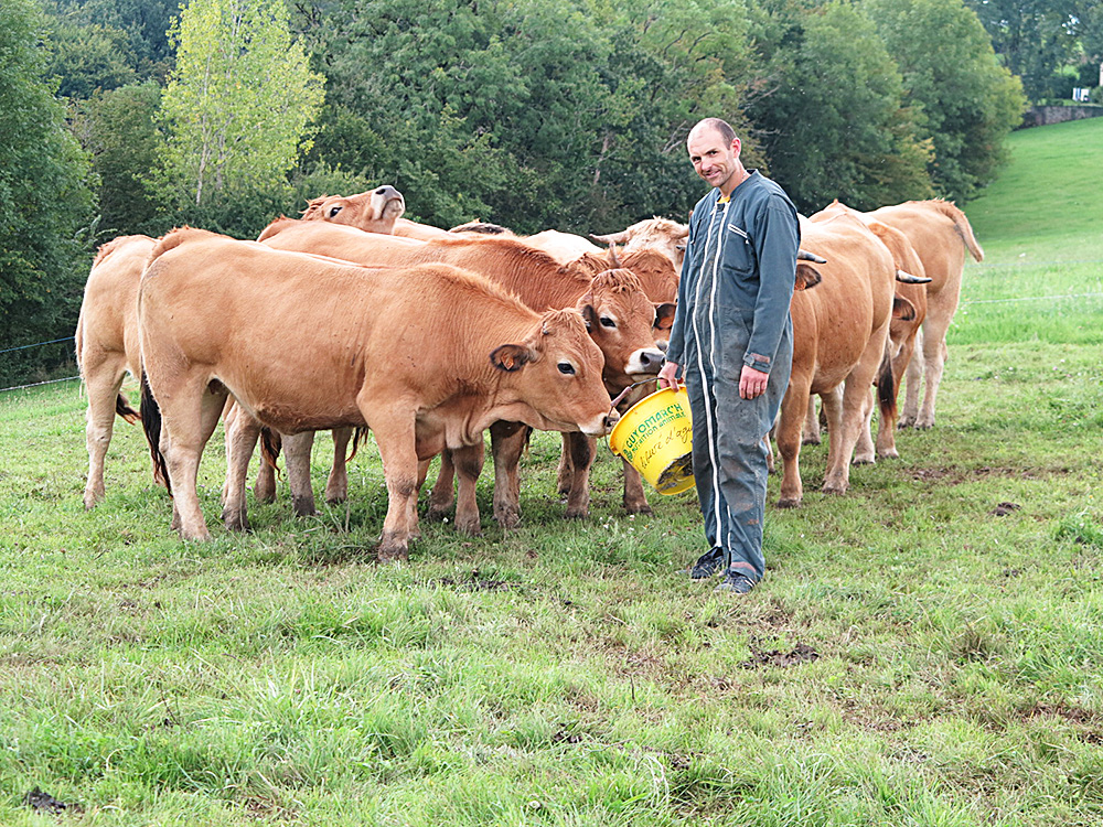 Installé sur une exploitation tournée vers le canard gras et la volaille à Miers, Guillaume Lavergne a toujours possédé un troupeau de vaches allaitantes pour valoriser ses prairies. Après des Blondes d’Aquitaine puis des Limousines, il a opté en 2018 pour l’élevage de génisses Aubrac « je voulais un atelier complémentaire, pas gourmand en temps et à notre image, celle d’une ferme de terroir qui transforme et vend tout en direct. Nous avons donc une clientèle fidèle et attachée à la qualité de nos produits. J’ai opté pour la race Aubrac, sa facilité d’élevage et les atouts gustatifs de sa viande. J’ai donc monté cet atelier d’engraissement de génisses. Je les achète à 8 mois chez un éleveur du Ségala puis les élève jusqu’à l’âge de 3 ou 4 ans. C’est un élevage extensif, au pâturage de mars à novembre puis au foin à l’étable l’hiver. Je les finis pendant cinq mois à l’engraissement avant de les faire abattre à Saint-Céré puis découper à Gagnac sur Cère. J’y réalise l’emballage et la préparation des colis. Je les vends principalement l’été sur les marchés, saison creuse pour la viande de canard fraîche. Ma clientèle a vite adhéré à cette nouvelle viande et apprécie sa qualité et sa fraîcheur. Comme nous avions déjà tout l’équipement froid et la bétaillère en cuma, cet atelier n’a pas exigé de gros investissements, tout en me permettant de compléter ma gamme de viandes…»[/box]