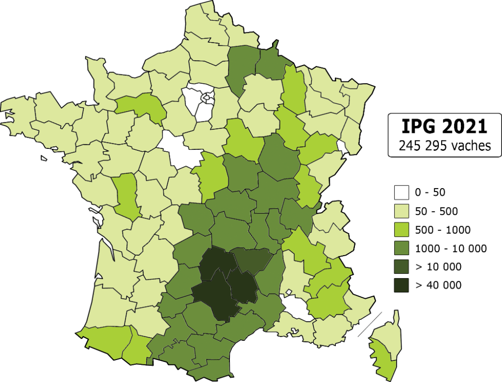 Tout ceci se traduit par la présence actuelle de 245 000 vaches Aubrac (femelles de plus de 3 ans) partout en France – la majorité des effectifs restant dans le berceau d’origine : l’Aveyron, le Cantal et la Lozère.