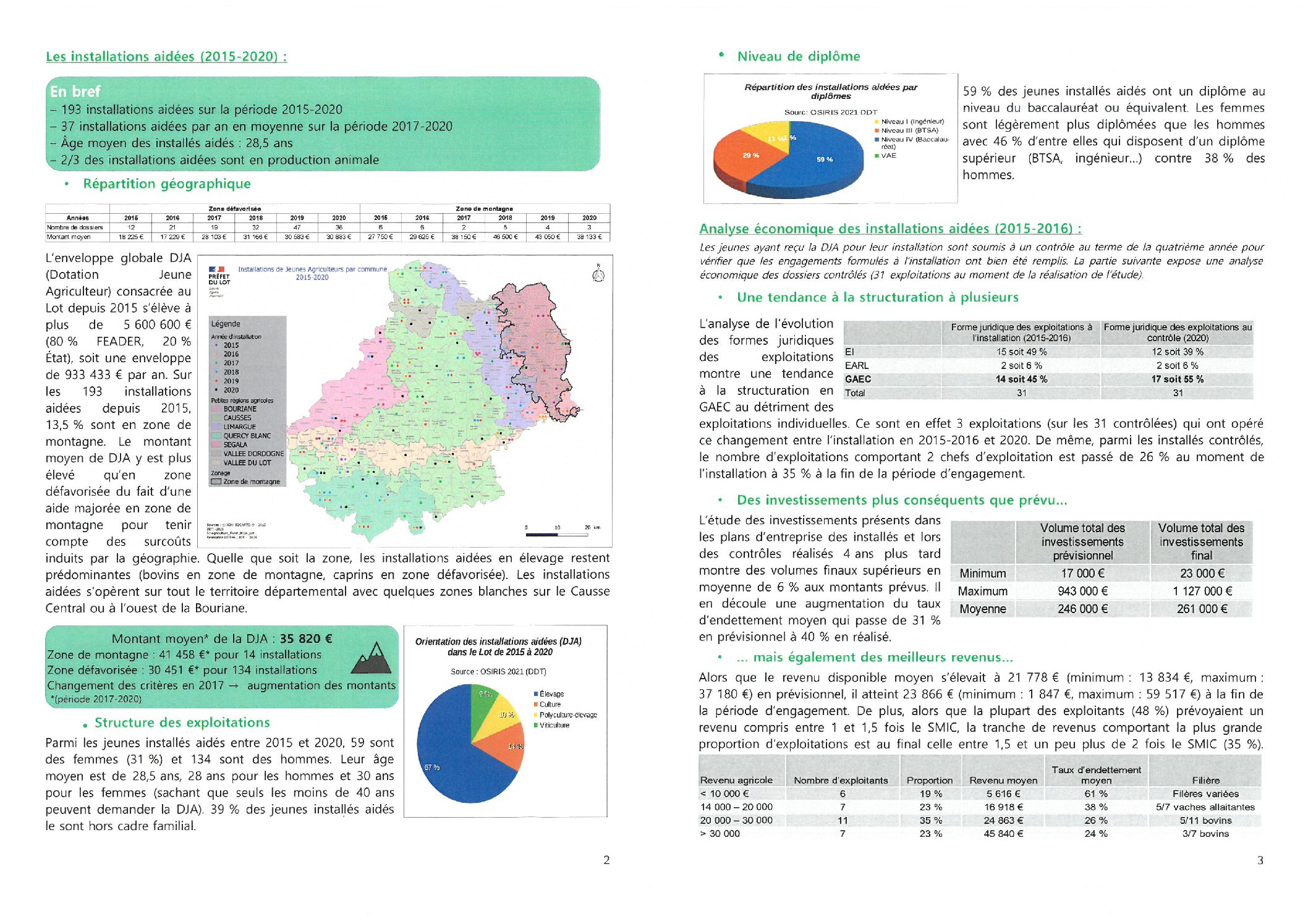 Enquête réalisé par la DDT sur l’évolution des installations dans le Lot entre 2015 et