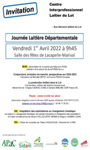 Le Centre Interprofessionnel Laitier organise une journée départementale le Vendredi 1️⃣er avril à la Salle des fêtes de Lacapelle-Marival