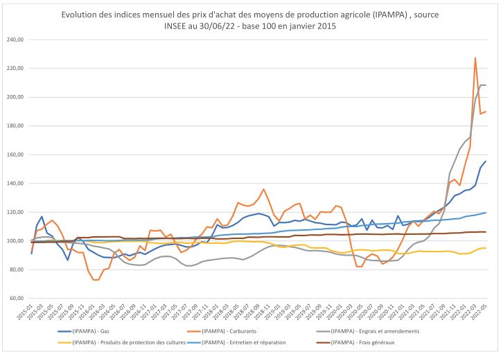 De même, cette estimation ne prend pas en compte l’augmentation des prix des matériels qui sera répercutée sur les futurs investissements. Par exemple, l’IPAMPA des tracteurs montre une augmentation de 9 %entre 2022 et 2020.La situation financière des exploitations nucicoles est déjà fragilisée suite à plusieurs années de gel et à des prix de vente inférieurs aux coûts de revient des années 2017 à 2021.
