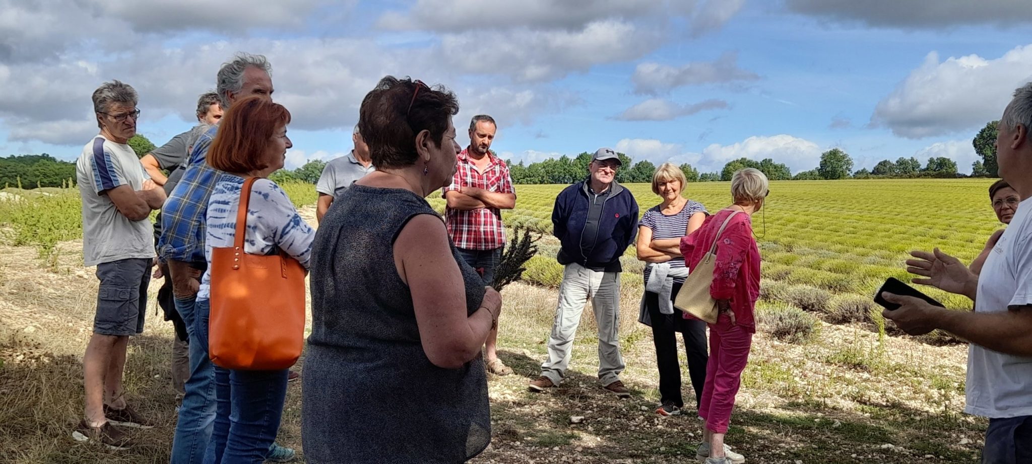 Les productions du Quercy blanc étant très variées, des cultures végétales jusqu’ à l’élevage, en passant par les productions spécialisées, les organisateurs avaient choisi quatre fermes représentatives de ce territoire à forte vocation agricole. Ils ont démarré au GAEC de Larroque à Saint Cyprien, chez la famille Solacroup où le melon et le raisin de table furent à l’honneur. Puis le groupe s’est rendu chez la famille Arnal à Montcuq pour visiter les champs de lavandin et le nouvel atelier de fabrication de pâtes alimentaires avec le blé de l’exploitation. Après le repas offert sur place, les visiteurs ont rejoint la ferme d’élevage ovin de Thierry Chanut à Montlauzun pour découvrir les brebis et leur transhumance. Enfin, la journée s’est achevée chez Céline Alméras et Mathieu Gizard à Pern qui ont monté un élevage de chèvres laitières pour la production de fromage Rocamadour. Les échanges ont été fructueux et la journée très ensoleillée a permis à ces habitants de découvrir en profondeur le métier et les contraintes de ces agriculteurs qui se sont prêtés au jeu de la transparence en toute simplicité.