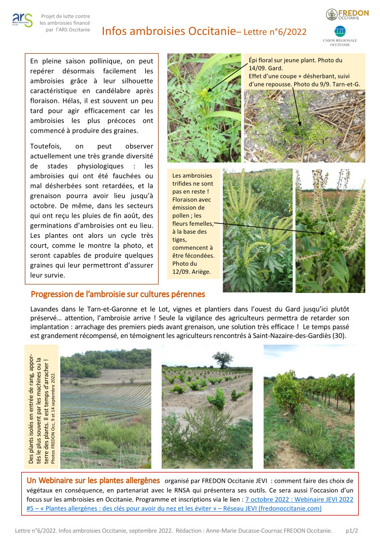 Actualité octobre 3, 2022 Aucun Commentaire 664 Info Ambroisie Occitanie 7 octobre 2022 : Webinaire JEVI 2022 #5 – « Plantes allergènes : des clés pour avoir du nez et les éviter » ✍️ TEST SIGNATURE