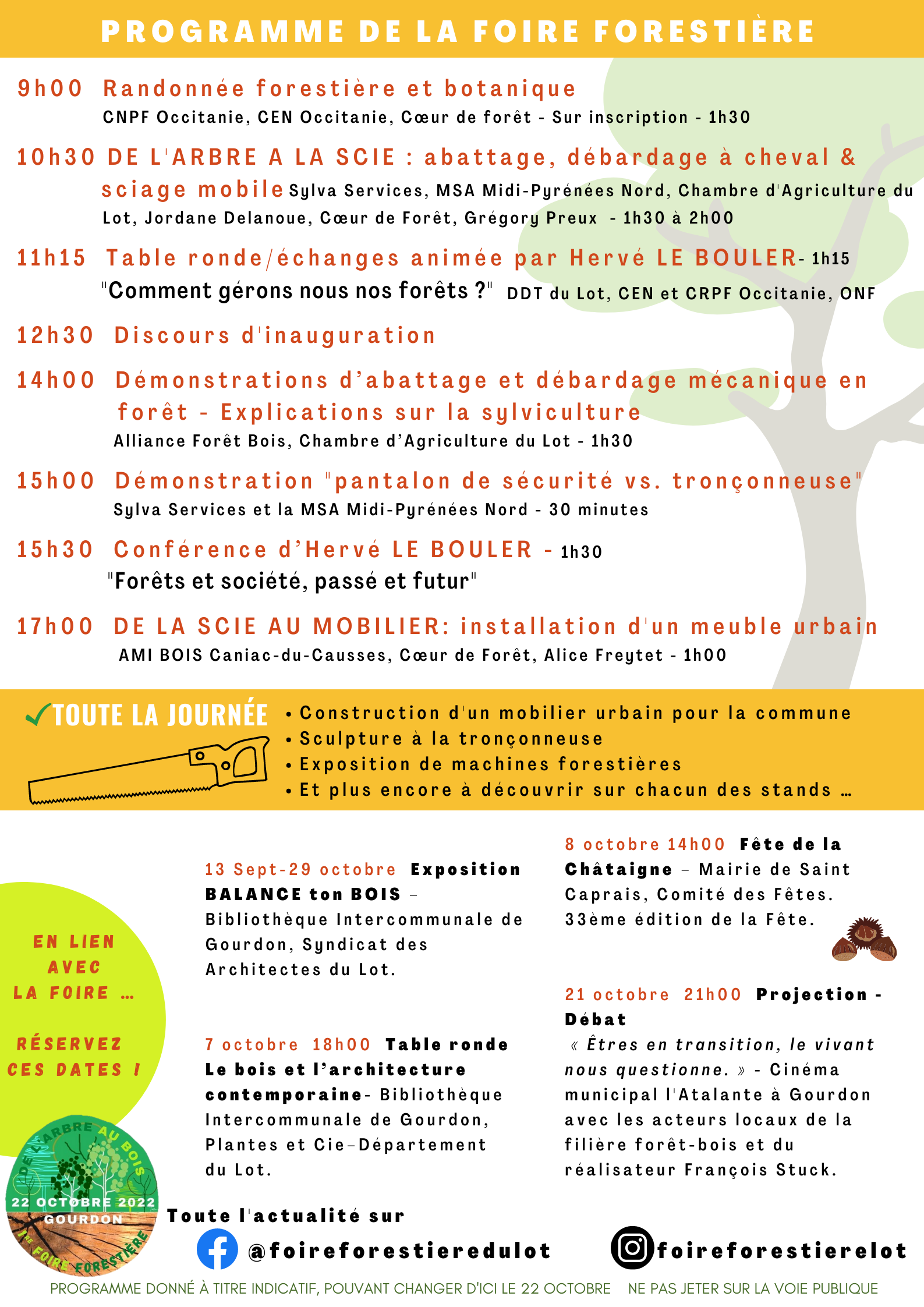 Actualité octobre 18, 2022 Aucun Commentaire 810 1re Foire Forestière du Lot ce samedi 22 octobre ! ✍️ TEST SIGNATURE