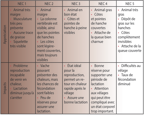 La note d’état corporel (NEC) est une méthode simple utilisés afin d’évaluer les réserves en graisses sur une échelle de 1 à 5.
