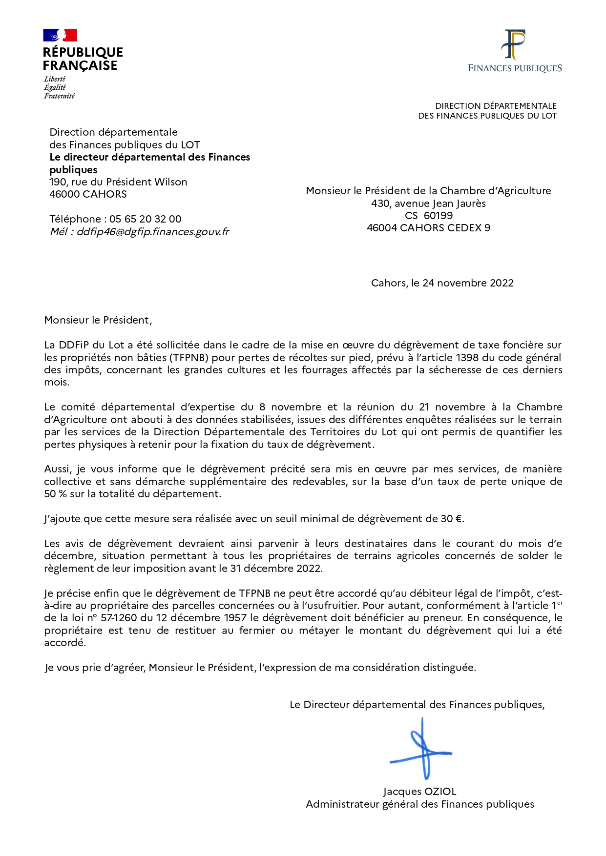 Sur les bases du Comité Départemental d’Expertise du 8 novembre, FDSEA du Lot, Jeunes Agriculteurs du Lot et Chambre d’agriculture ont rencontré la DDFIP le 21 novembre dernier.