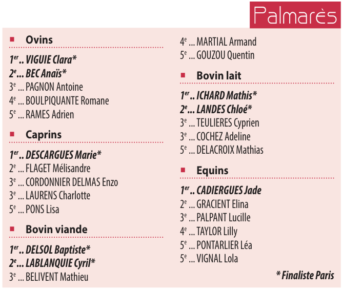Les élèves des établissements agricoles Lotois ont participé à la finale départementale du concours de jugement d’animaux le 1er décembre à la Vinadie. Les lauréats ont été félicité par les responsables agricoles. Les meilleurs iront défendre leurs chances à la finale nationale.