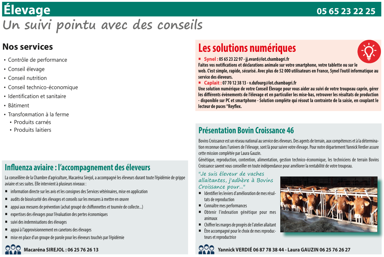 Agriculture janvier 27, 2023 Aucun Commentaire 644 La Chambre d’agriculture du Lot vous accompagne : Focus sur le service Elevage ✍️ TEST SIGNATURE