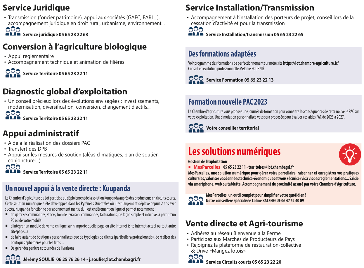 Agriculture janvier 30, 2023 Aucun Commentaire 840 La Chambre d’agriculture du Lot vous accompagne : Focus sur le service Entreprise et Territoires ✍️ TEST SIGNATURE
