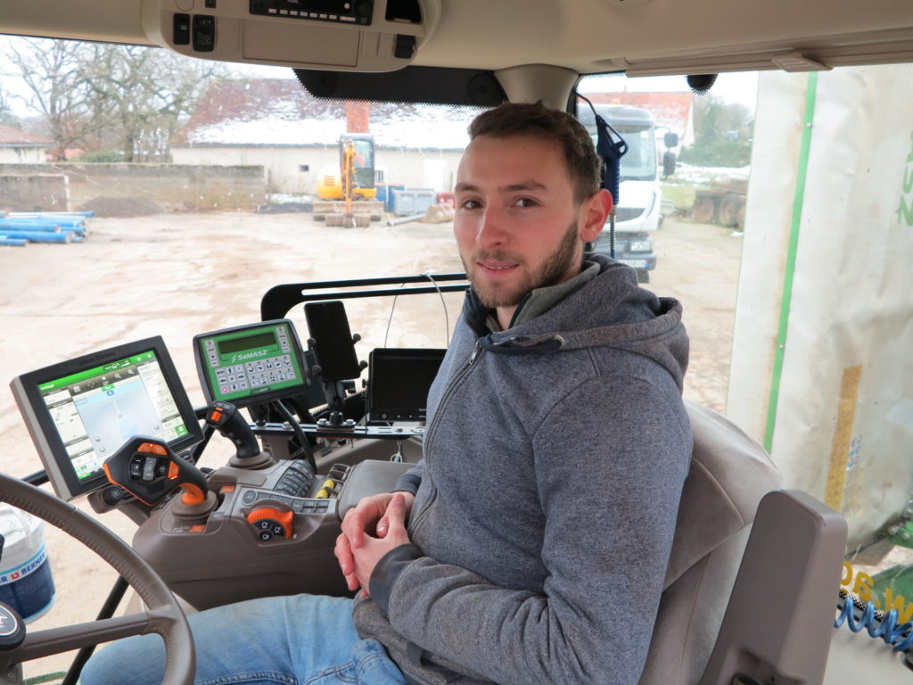 Antonin Quercy, jeune chauffeur de la cuma, a immédiatement adopté ce système d’autoguidage et en est devenu un fervent adepte comme il le raconte « ce système permet un véritable gain de temps et de confort. Lorsque j’arrive sur la parcelle, je réalise un premier passage sur une ligne droite ou courbe la plus longue et programme la largeur de mon matériel. Puis l’ordinateur calcule automatiquement les lignes de passage de chaque côté, et les visualise sur l’écran de contrôle. Il suffit alors de lancer l’autoguidage et il prend la main pour guider le tracteur. Cela permet d’optimiser les passages et de gagner en efficacité. C’est très pratique pour le semis et le fauchage car on gagne du temps, on tasse moins le sol et on n’oublie aucune surface. De plus, cela permet au chauffeur de pouvoir se concentrer sur le travail de l’outil en étant plus vigilant. On peut bien entendu reprendre la main à tout moment avec le volant. Ce système est d’autant plus intéressant quand on travaille de nuit car cette cartographie de la parcelle met en évidence les surfaces où on n’est pas passé. Enfin, intégré à la cabine grand confort du John Deere, il diminue aussi la fatigue, ce qui est appréciable quand on reste au volant de très longues journées… »