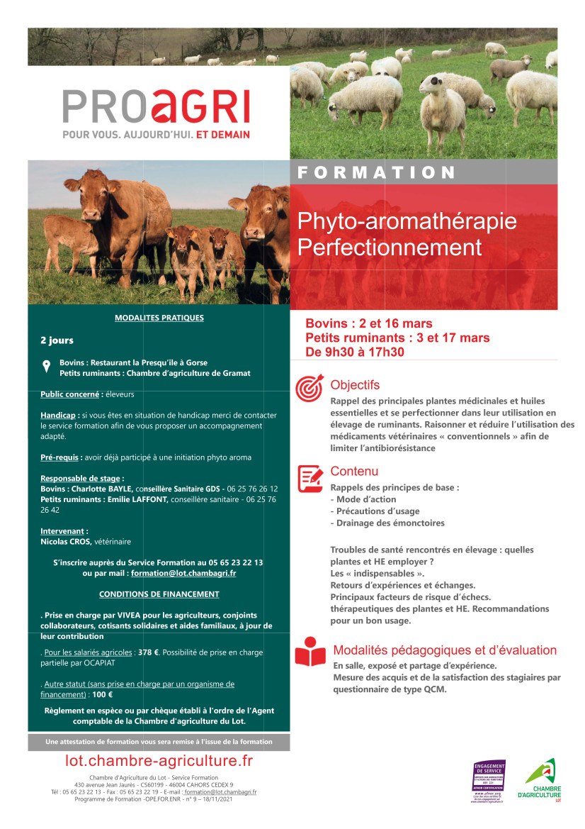 Ou en contactant le service formation au 05 65 23 22 13 ou par mail : formation@lot.chambagri.fr
