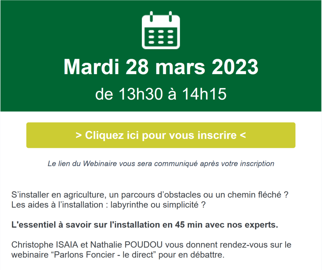 Actualité mars 16, 2023 Aucun Commentaire 558 SAFER : Parlons Foncier – Webinaire le 28 mars ✍️ TEST SIGNATURE