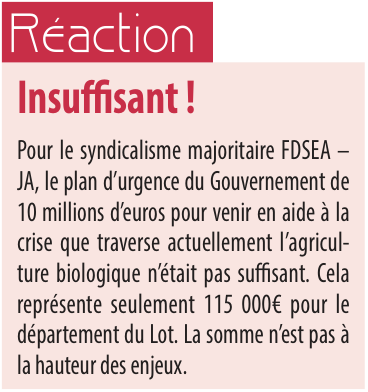 Afin d’accompagner les exploitations en agriculture biologique en graves difficultés économiques et en risque de déconversion, un fonds d’urgence de 10 M € est mis en place pour financer une aide d’urgence.