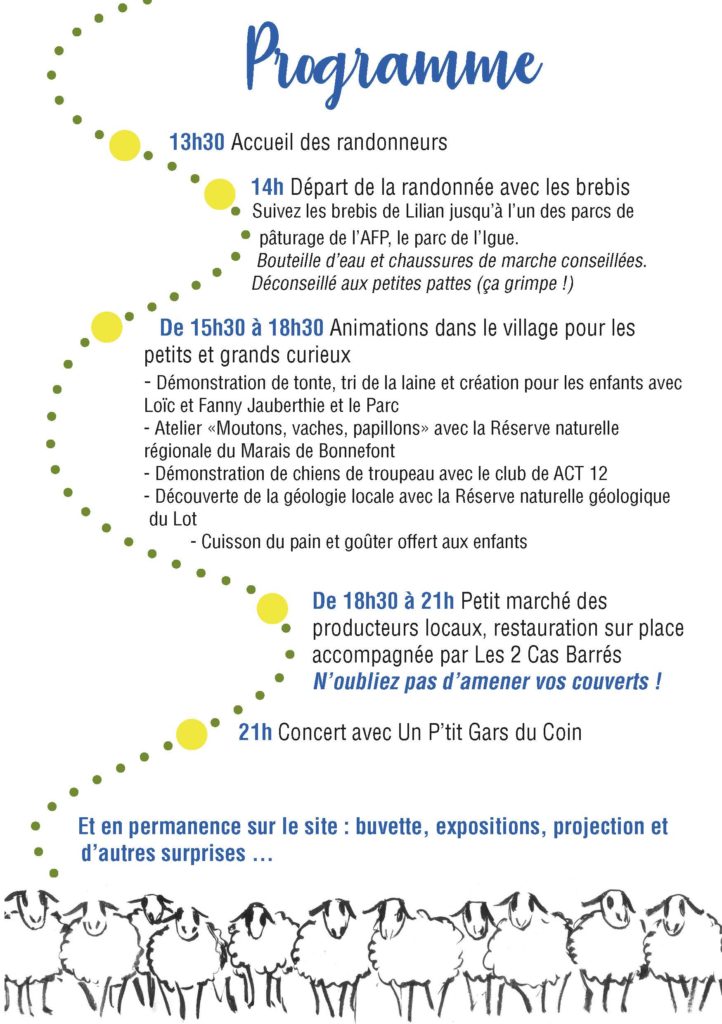 Cette journée festive et pédagogique permet aux propriétaires et éleveurs, fortement soutenus par les mairies de Crégols et Lugagnac, de partager leurs actions avec les habitants et de célébrer le pastoralisme sur les causses du Quercy et ses enjeux. Pour cela, ils ont concocté un programme haut en couleur !