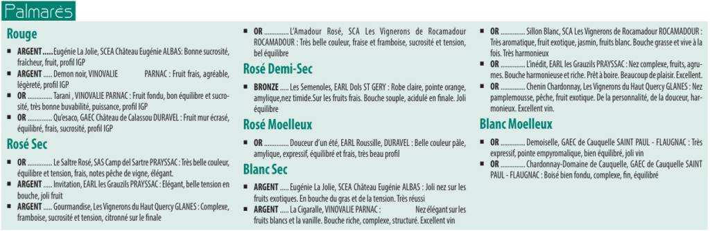 Vins IGP des Côtes du Lot : Un très beau concours 2023 avec la qualité au rendez-vous