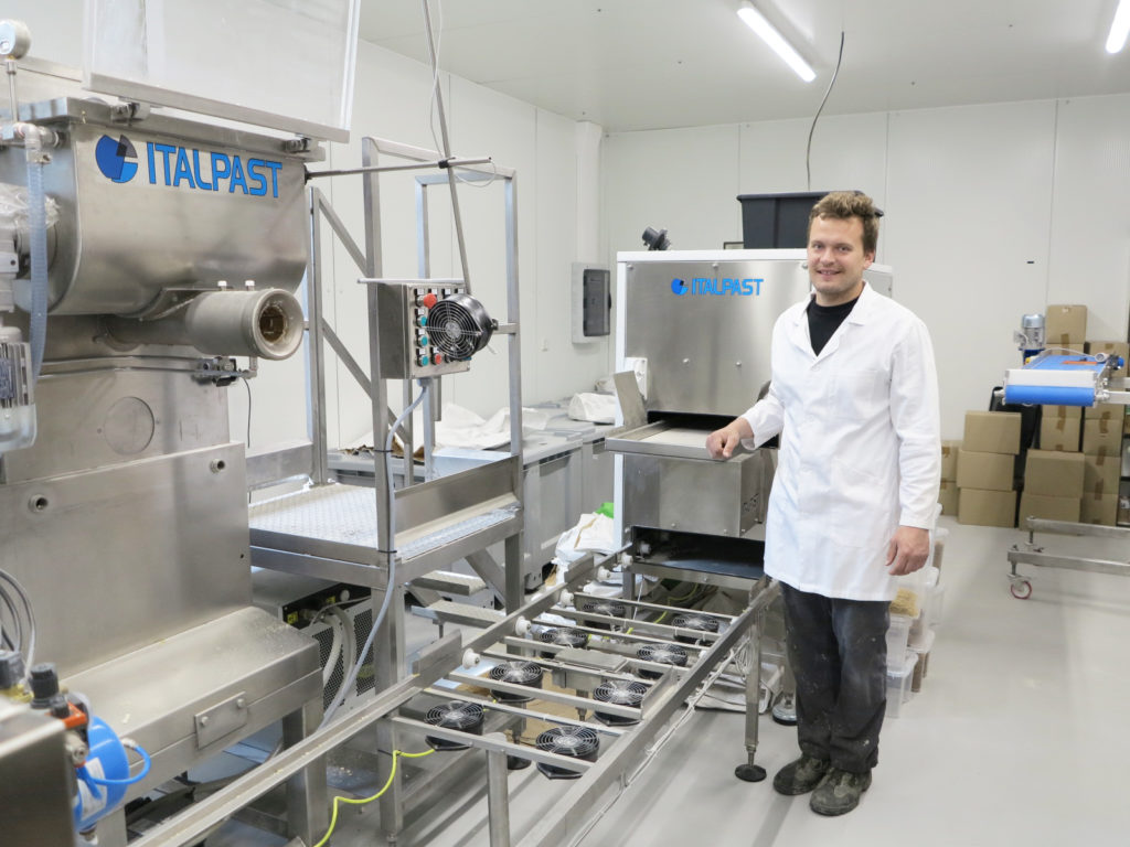 Paul Arnal a travaillé le projet pendant deux ans, la culture du blé dur étant la partie la plus facile sur l’exploitation. La ferme est certifiée Haute Valeur Environnementale niveau 3 et il cultive son blé sur ses terres de plateaux avec des rendements faibles de l’ordre de 25 quintaux/ha mais une haute qualité des grains. La partie transformation fut plus délicate comme il le souligne «j’ai pris de nombreux contacts pour choisir la machine qui fabrique les pâtes. C’est un matériel assez sophistiqué qui intègre un préséchoir pour fixer la couleur puis un séchoir pour sécher les pâtes pendant 24 heures à très basse température afin de conserver toute leur valeur nutritionnelle. Car je voulais un produit de très haute qualité pour me démarquer sur le marché très concurrentiel des pâtes… » Il achète finalement une machine de fabrication Italienne ainsi qu’une ensacheuse pour conditionner ses pâtes. Son projet d’installation se réalise début 2022, il bénéficie de la DJA et d’un prêt bancaire, ainsi que d’une aide de la région pour son atelier innovant.