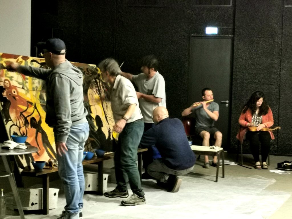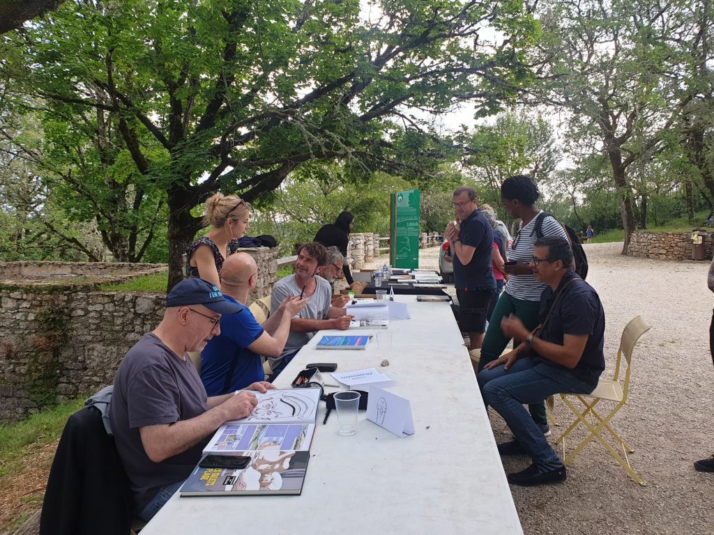 Romaric Defrance pour le son, Pascal Rabaté, David Prudhomme, Edmond Baudoin et Troubs pour les dessins, tous étaient présents et ont eu plaisir à répondre aux nombreuses questions du public et à se souvenir de cette expérience unique au monde, à la fois ludique et profonde.
