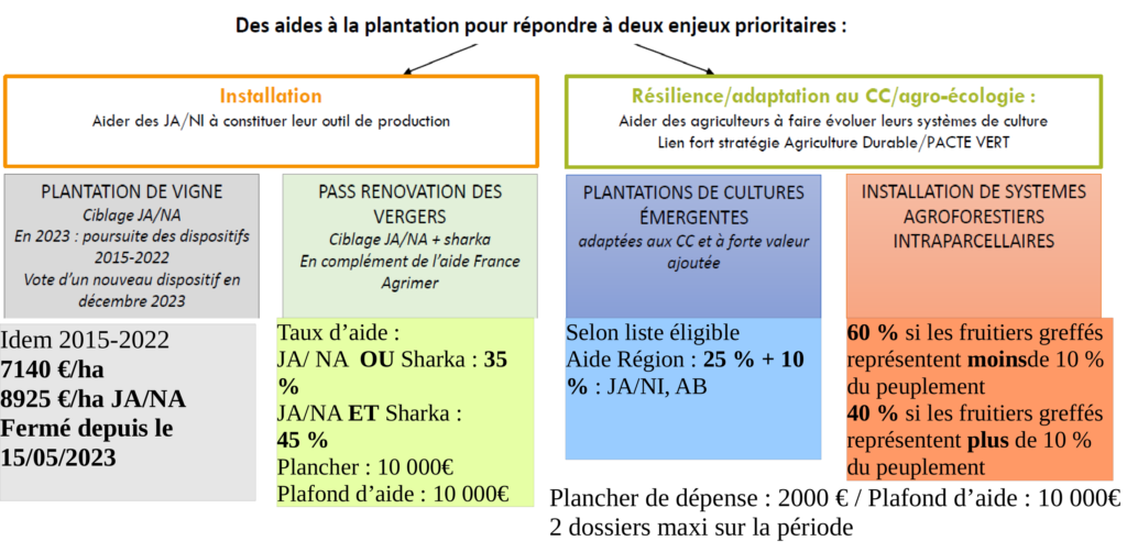 Dispositifs d’aide à la plantation, DU «Dispositif Unique » et « PASS Exploitation petits investissements » remplacent les anciennes mesures tel que M.411, M.412, M.413, M.421, …