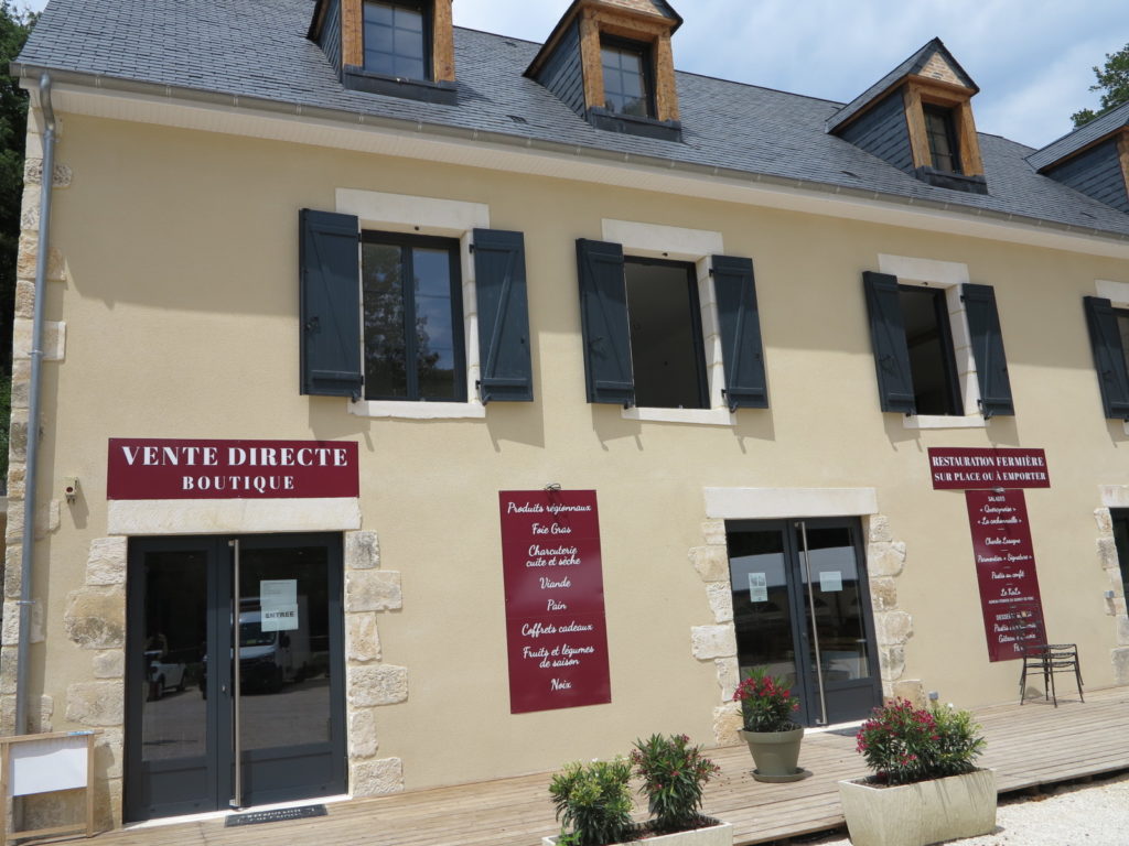 Ce beau projet a nécessité un investissement important. La grange a été quasi-intégralement reconstruite pour aménager au rez de chaussée le magasin et la cuisine entièrement équipée, ainsi qu’à l’étage deux gîtes ruraux qui seront loués aux vacanciers. Car Karine entend rester ouverte toute l’année « je veux proposer les produits fermiers toute l’année pour pouvoir toucher aussi bien les habitants locaux que les touristes de passage. J’envisage donc d’ouvrir toute la semaine en saison haute (juin à septembre et vacances scolaires) et trois jours enfin de semaine le reste du temps. Je propose une gamme très large avec les produits frais, des charcuteries cuites et sèches, des plats cuisinés… »Pour monter son dossier de demande d’aide, elle s’est rapprochée de la Chambre d’agriculture et a pu obtenir des subventions de la Région Occitanie et du Conseil départemental. Elle vient d’inaugurer ce nouveau magasin à l’occasion du printemps à la ferme organisé par le réseau BAF les 3 et 4 juin « on a eu pas mal de fréquentation et pour faire venir les gens, je vais proposer une animation par mois pendant la saison estivale. Je suis parrainée par le sosie de Chaplin, Anthony Champeil, qui est originaire de Corrèze et viendra faire ses sketchs racontant la genèse du projet. c’est un vrai animateur avec qui nous partageons le même attachement au terroir… »