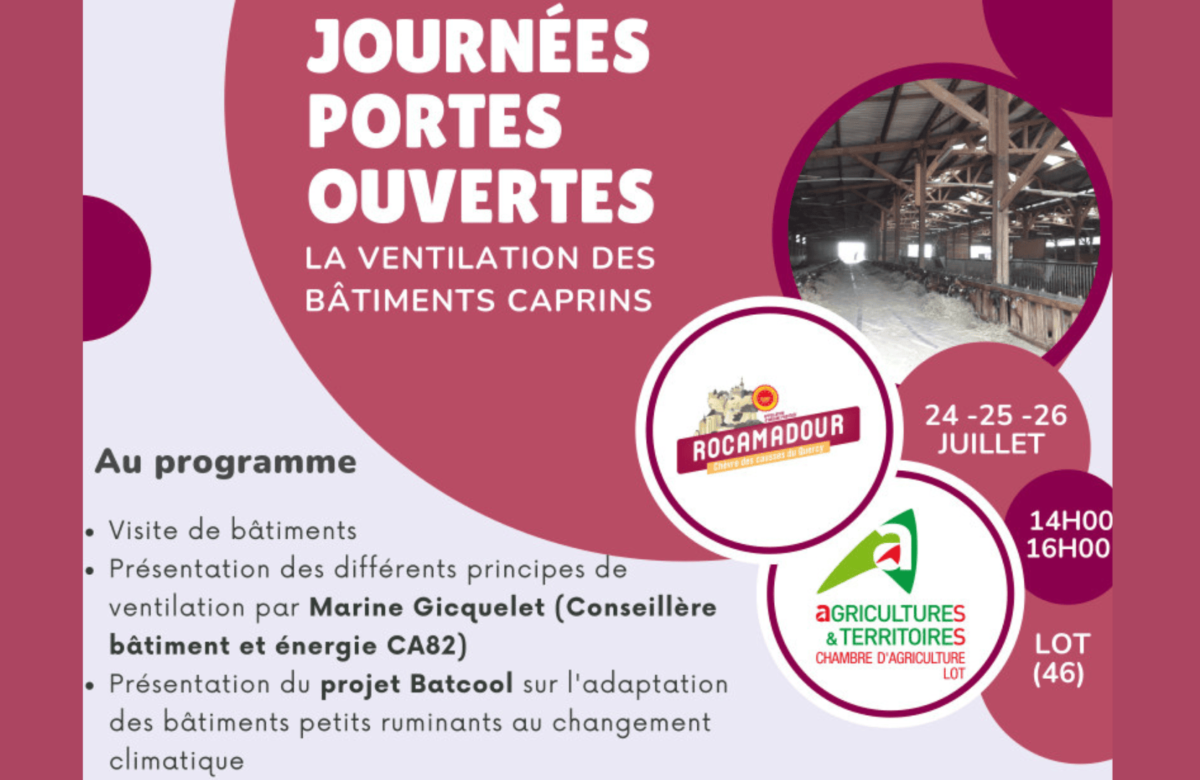 Journées Portes Ouvertes Caprines : la ventilation des bâtiments pour le bien-être des chèvres les 24,