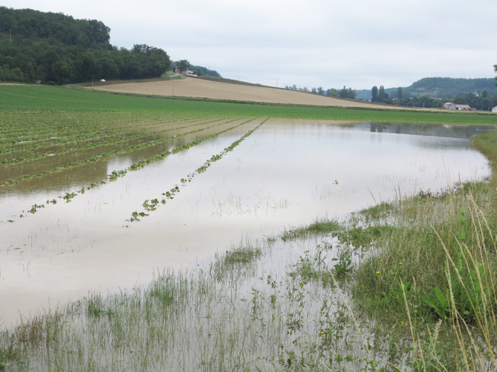 Notre département a subi les assauts du ciel depuis la fin du mois de Mai. Les orages à répétition se sont accompagnés de pluies diluviennes et parfois de grêle avec de graves conséquences sur les cultures d’été. Les communes des cantons de Lalbenque, Castelnau-Montratier et Montcuq ont été les plus touchées. Il est tombé jusqu’à 220 mm de pluie par endroit, ce qui a saturé les sols d’eau et provoqué d’énormes ruissellements, des ravinements et coulées de boue qui ont emporté les cultures en place. Les parcelles les plus touchées sont les cultures de melons et d’ail, mais aussi de tournesol, maïs, soja et autre cultures d’été. Des cumuls de pluies sans précédent ont emporté la terre des coteaux vers les bas de champs, les fossés et les ruisseaux, noyant toute la végétation sur leur passage. On note également quelques violentes averses de grêle très locales qui ont aussi causé des dégâts sur les fruits et les cultures. La grêle qui a également frappé en d’autres endroits du département comme à Bélaye, Lissac et Mouret ou Lamagdelaine.