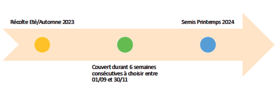 Le couvert doit rester en place au moins 6 mois. Il doit être semé avant le 31 mai et ne pas être détruits avant le 31 août.