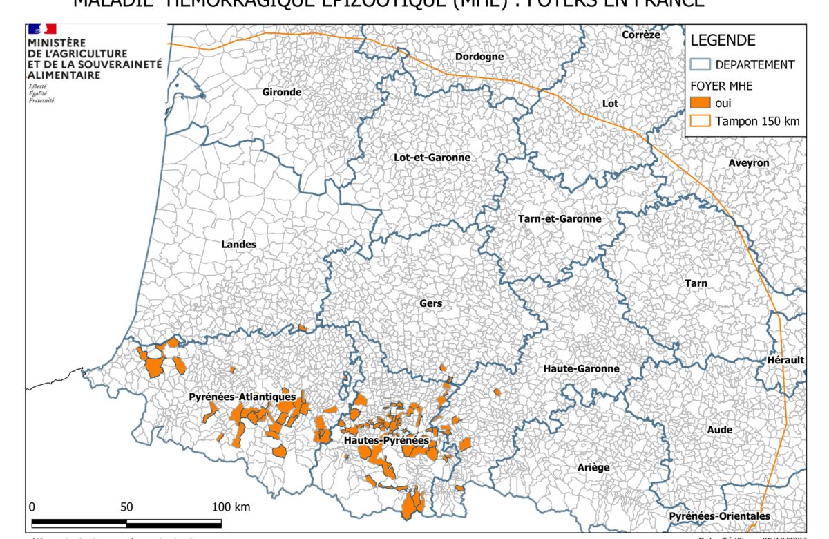 Maladie Hémorragique Epizootique : Carte des foyers en France