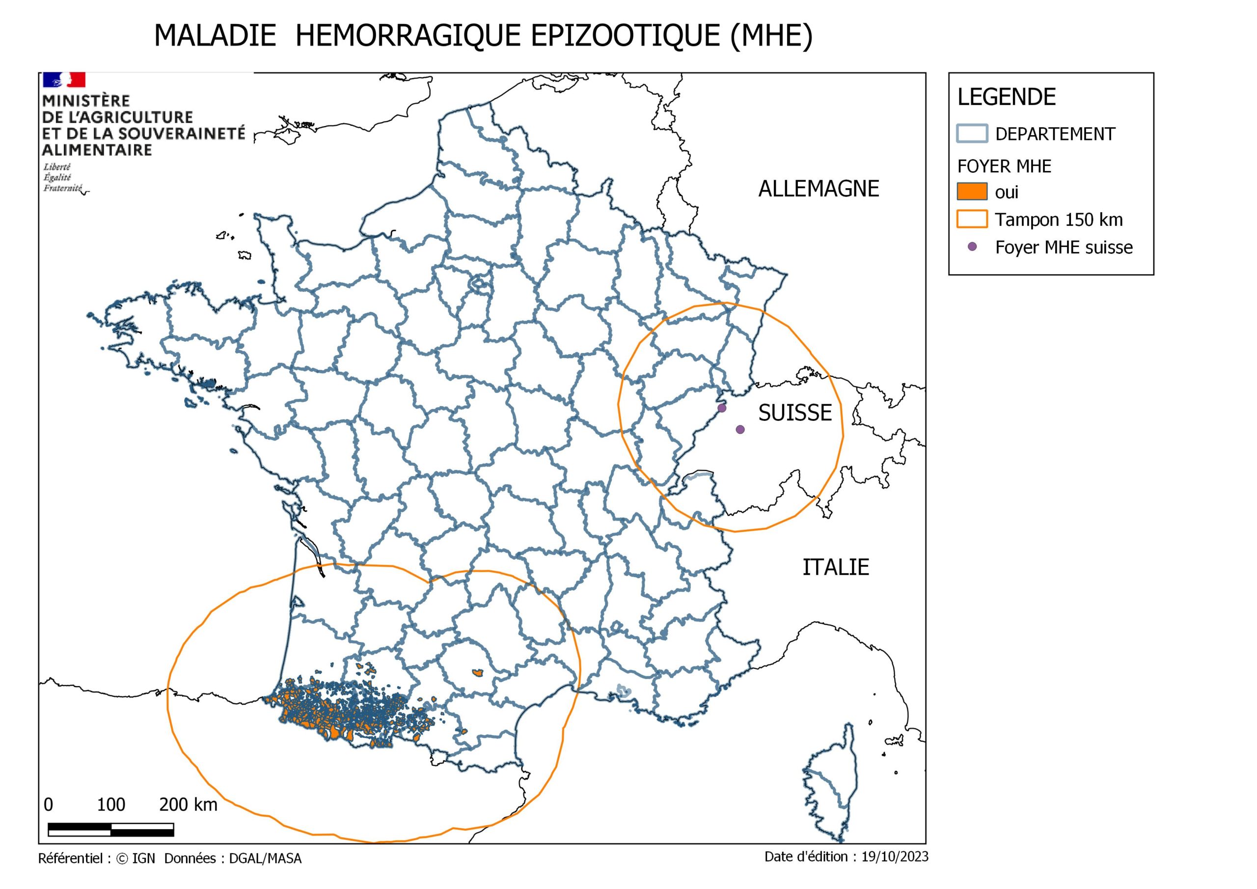 1194 foyers ont été détectés dans le Sud Ouest, et un nouveau foyer déclaré en Suisse près de la frontière avec la France