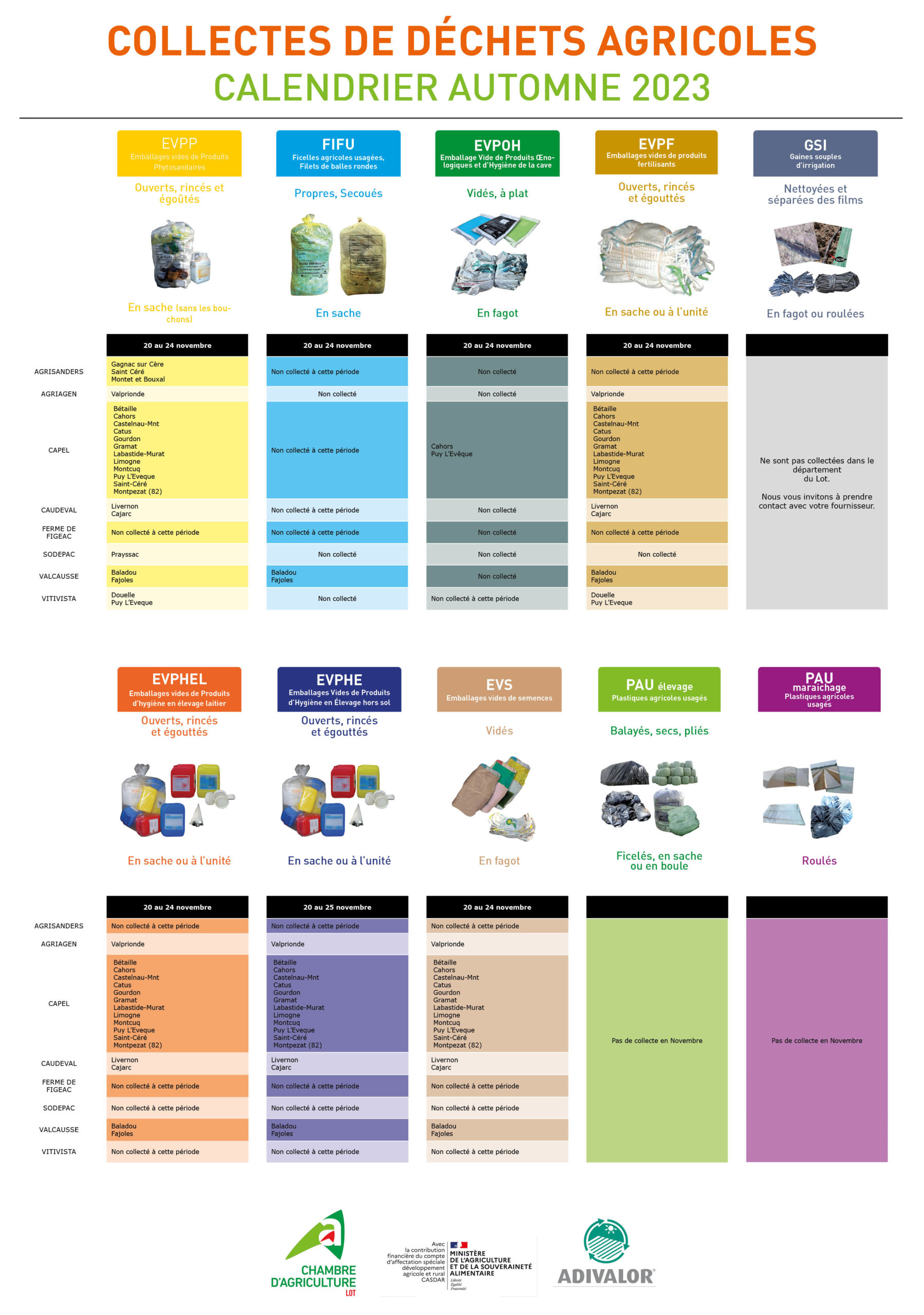 Actualité novembre 15, 2023 Aucun Commentaire 515 Collectes de déchets agricoles : Calendrier automne 2023 ✍️ TEST SIGNATURE