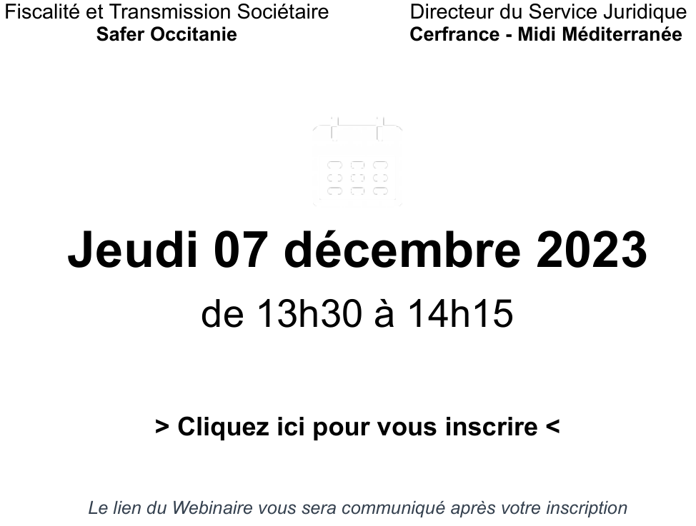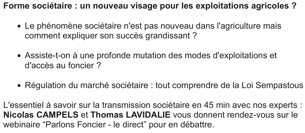 Actualité novembre 30, 2023 Aucun Commentaire 665 Parlons Foncier – le direct – 07 décembre – Forme sociétaire : un nouveau visage pour les exploitations agricoles ? ✍️ TEST SIGNATURE