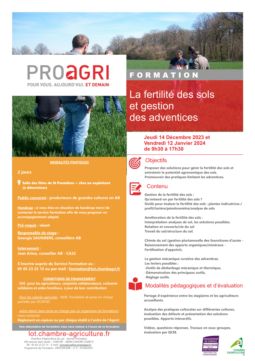 Agriculture décembre 1, 2023 Aucun Commentaire 558 Formation : La fertilité des sols et gestion des adventices ✍️ TEST SIGNATURE