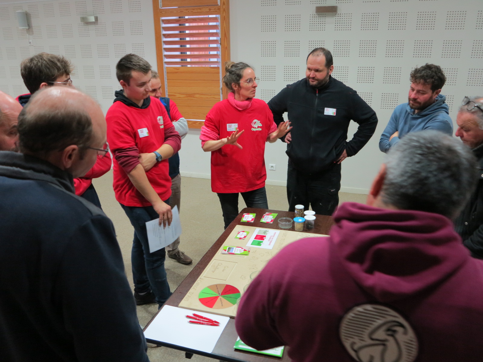 Après cette table ronde matinale, l’après midi était consacré au questionnement sur la mise en pratique de cette autonomie fourragère. Les élèves du BTS « productions animales » deuxième année du Cfaa-Cfppa du Lot, coorganisateurs de cette journée, avaient travaillé le sujet à leur manière. Ils ont imaginé un jeu de cartes destiné aux agriculteurs pour les aider à trouver les pistes d’amélioration. Il s’agissait de concevoir des mélanges de plantes et des techniques pour affourager les animaux (cartes d’actions, cohérences des méthodes, blocages…). Un procédé à la fois ludique et pédagogique permettant de cerner ce qu’il est possible de faire et ce qui peut bloquer. Les éleveurs et les élèves ont ainsi pu échanger sur des cas concrets et progresser sur cette voie. Cette journée très constructive a finalement permis de faire progresser ensemble les uns et les autres sur ce sujet aujourd’hui majeur.
