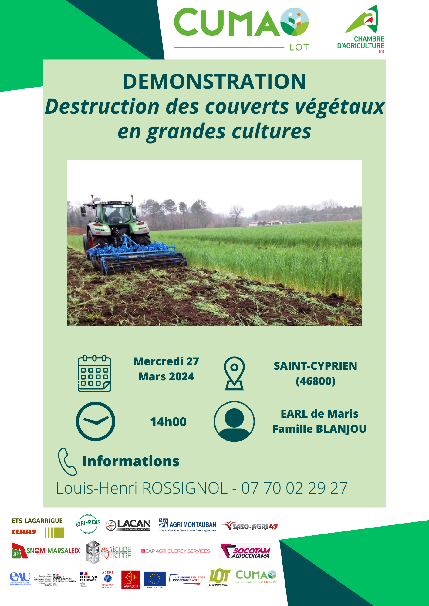 Actualité mars 18, 2024 Aucun Commentaire 606 Démonstration : Destruction des couverts végétaux en grandes cultures à Saint-Cyprien le 27 mars ✍️ TEST SIGNATURE