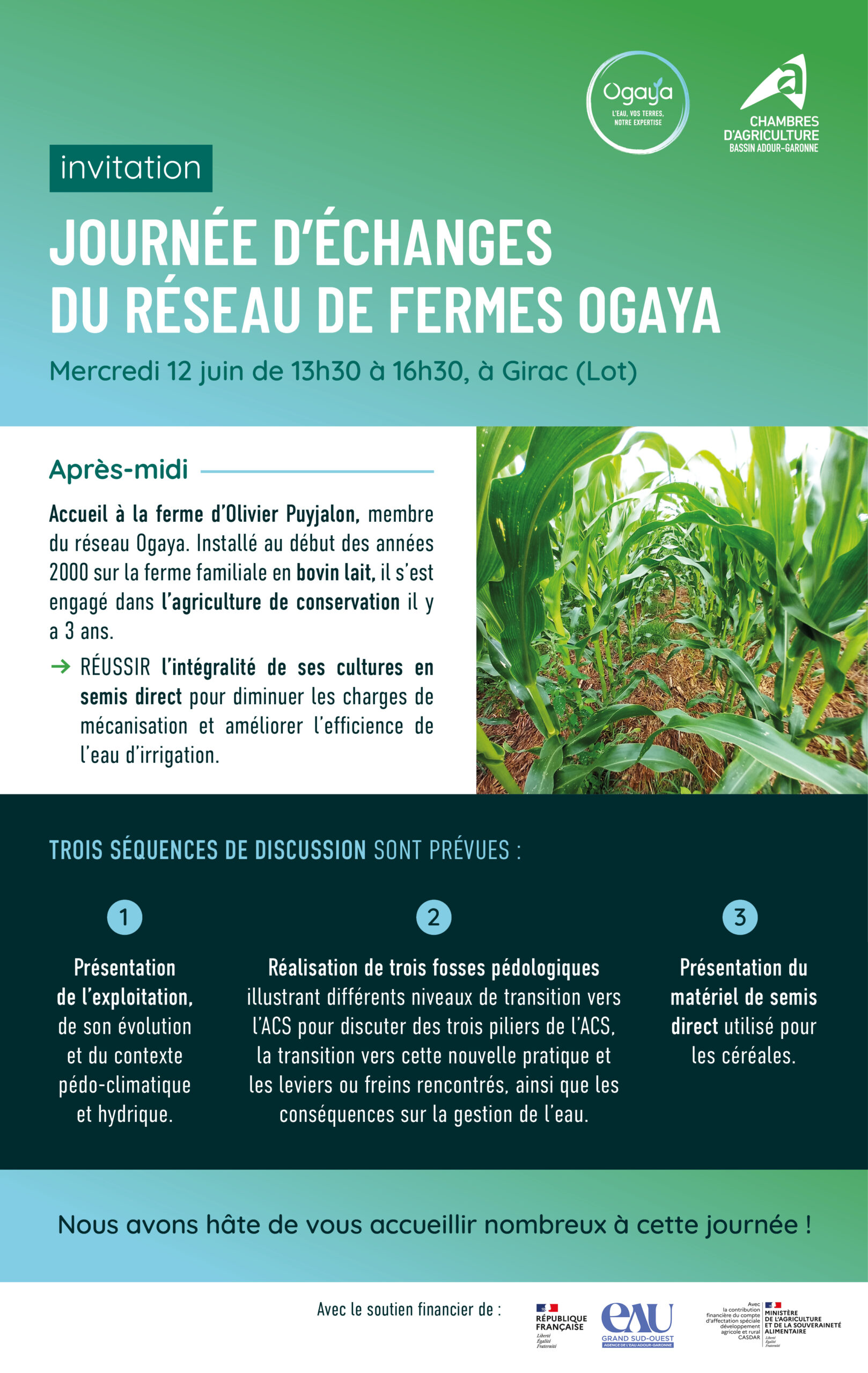 Le maïs en semis direct, c’est possible ! Les autres cultures aussi, avec des économies à la clé et une meilleure résistance à la sécheresse. Venez nombreux à Girac pour découvrir ou redécouvrir l’agriculture de conservation et le semis direct du maïs sous couvert.