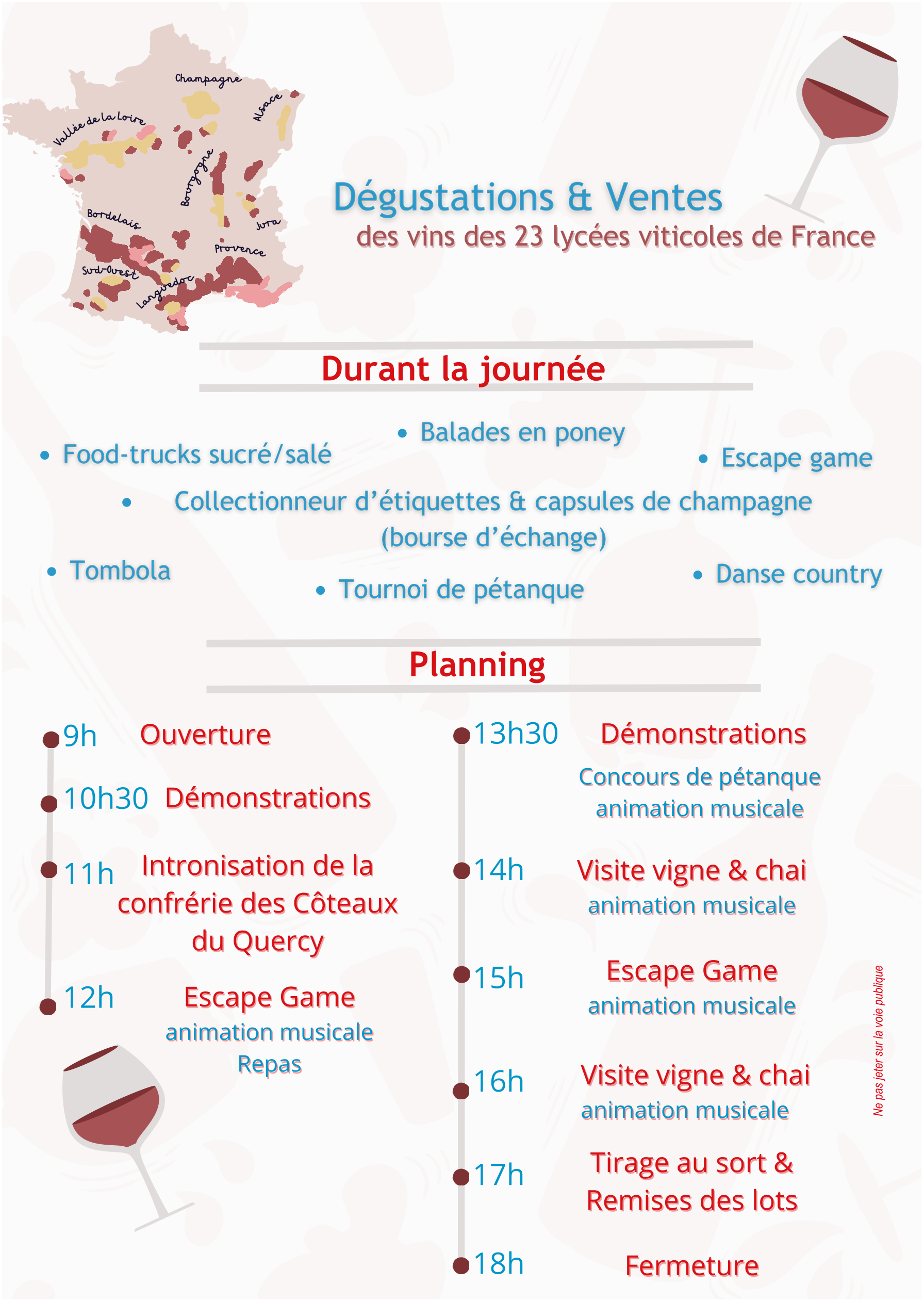Il s’agit d’un évènement qui propose une grande variété de vins provenant des différents lycées viticoles de France ainsi que de nombreuses activités pour tous les âges.