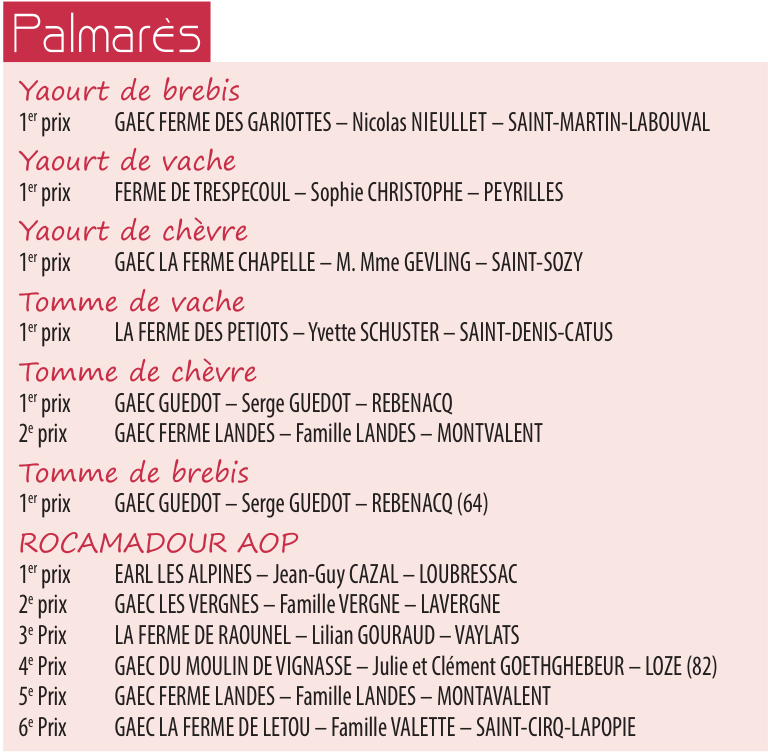 Le jury composé de 25 techniciens, producteurs et simples amateurs a dégusté à l’aveugle les fromages pour leur attribuer une note. 39 échantillons étaient en concours. Un exercice difficile tant la qualité et la régularité ont progressé ces dernières années. Passionnés par leur produit, les producteurs rivalisent aujourd’hui de perfectionnement pour sortir des fromages d’excellence qui portent haut leur savoir-faire et contribuent largement à leur notoriété et à leur succès. Les Français mais aussi les amateurs des autres pays ne s’y trompent pas en achetant ces purs produits du terroir. Après délibération, voici le palmarès de ce concours 2024.