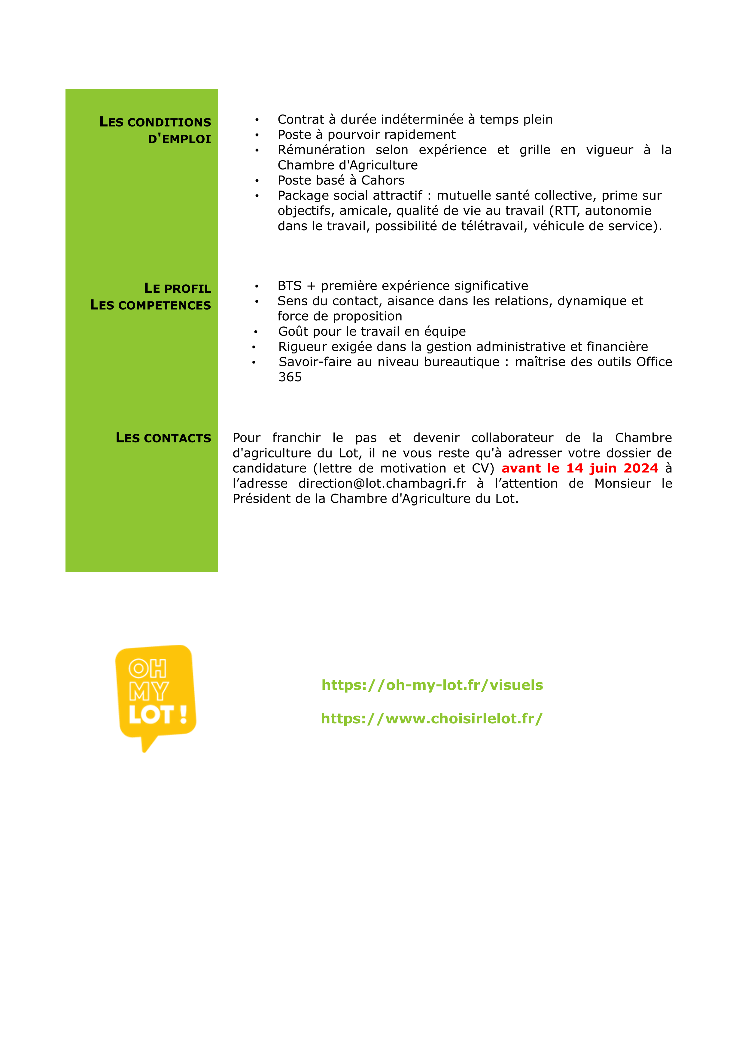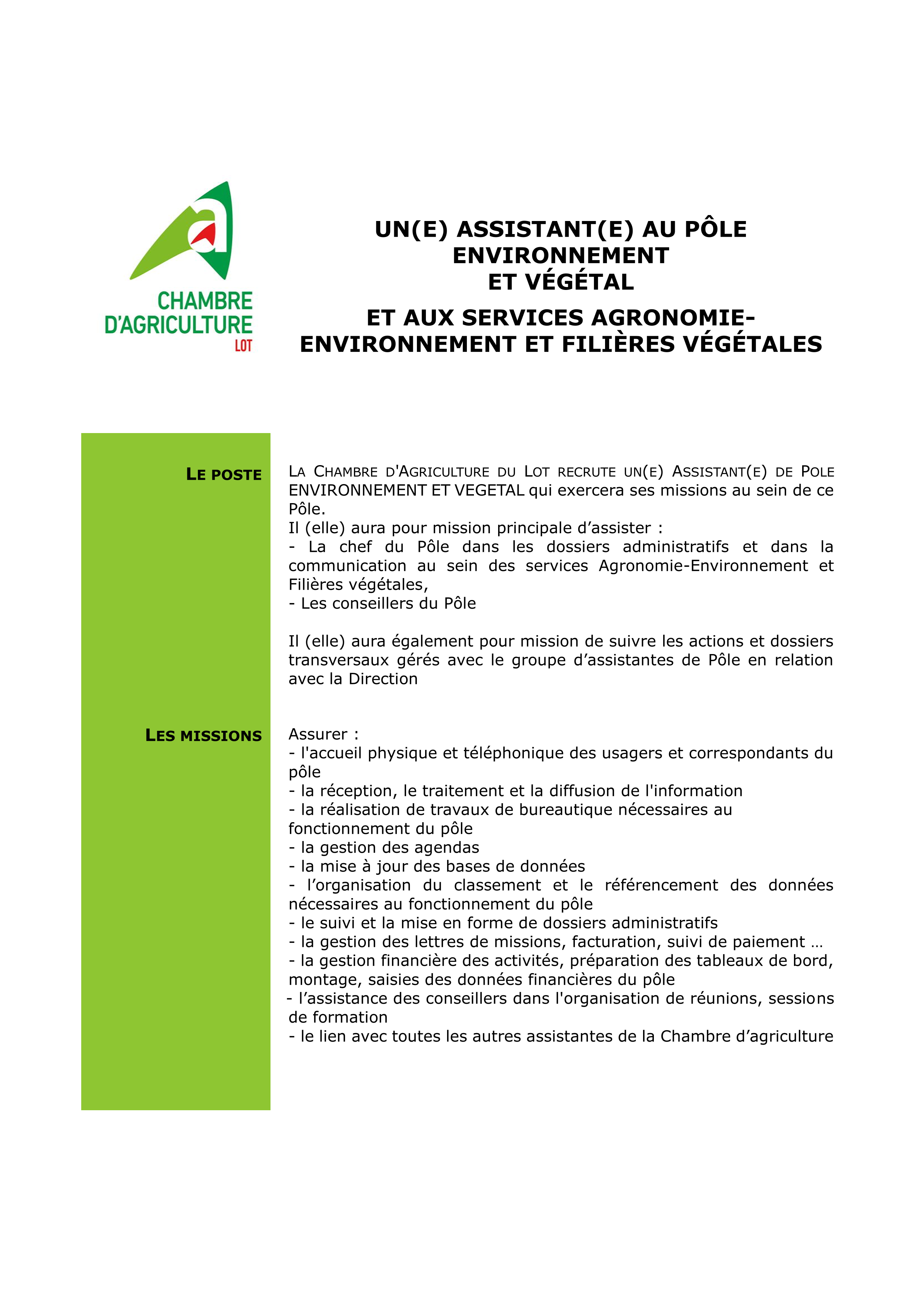 Actualité juin 7, 2024 Aucun Commentaire 570 La Chambre d’agriculture du Lot recrute un(e) Assistante au Pôle Environnement et Végétal ✍️ TEST SIGNATURE