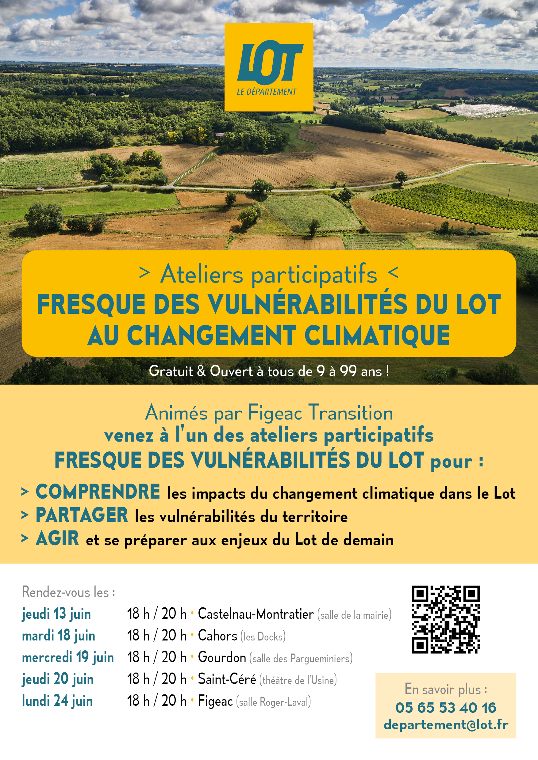 Dans la poursuite du 1er travail de diagnostic réalisé en partenariat avec le Cerema, avec le soutien de l’Agence de l’eau Adour Garonne et de l’Etat, le Département organise en juin une série d’ateliers « fresque des vulnérabilités » avec la population pour comprendre, partager et agir sur les enjeux d’adaptation au changement climatique.