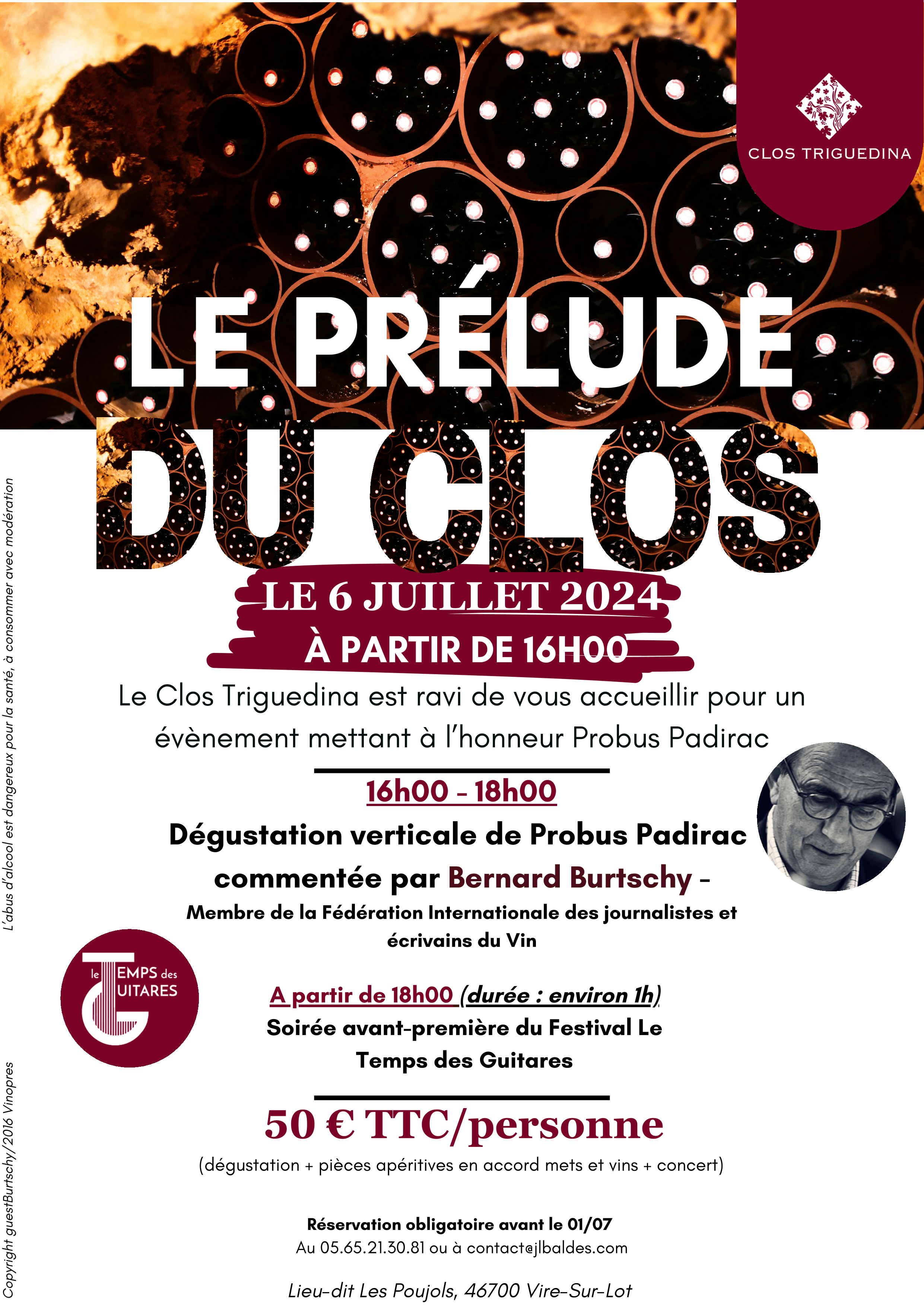 Actualité juin 28, 2024 Aucun Commentaire 388 CLOS TRIGUEDINA : Le Prélude du Clos le 6 juillet ✍️ TEST SIGNATURE