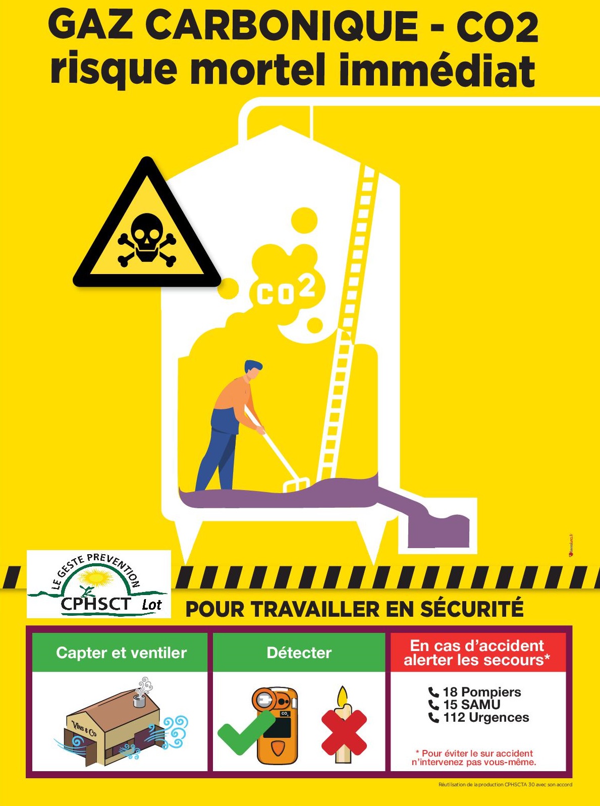 Issu de la fermentation alcoolique, le dioxyde de carbone est un gaz incolore et inodore, qui peut tuer en quelques minutes par asphyxie.
