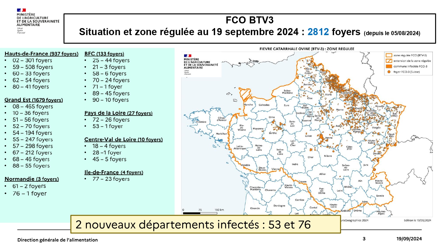 - Aucun foyer de FCO sérotype 3 n’a été détecté pour l’instant.