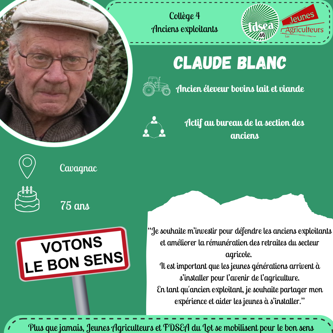 Élections Chambre d’agriculture : FDSEA/JA portrait de Claude BLANC