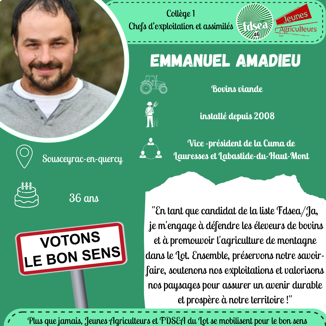 Actualité janvier 17, 2025 Aucun Commentaire 283 Élections Chambre d’agriculture : FDSEA/JA portrait d’Emmanuel AMADIEU Emm ✍️ TEST SIGNATURE