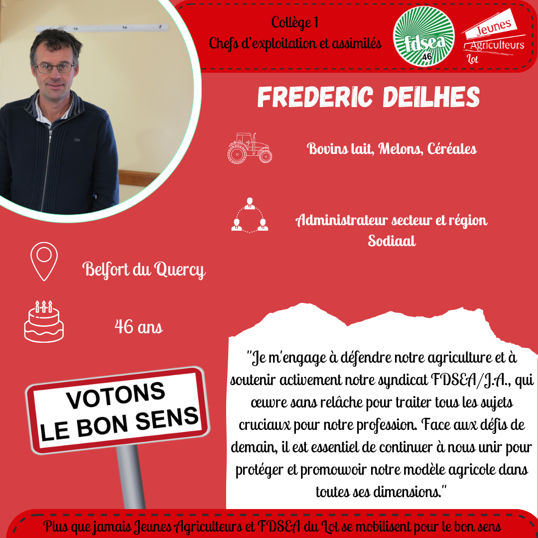 Actualité janvier 18, 2025 Aucun Commentaire 267 Élections Chambre d’agriculture : FDSEA/JA portrait de Frédéric DEILHES ✍️ TEST SIGNATURE