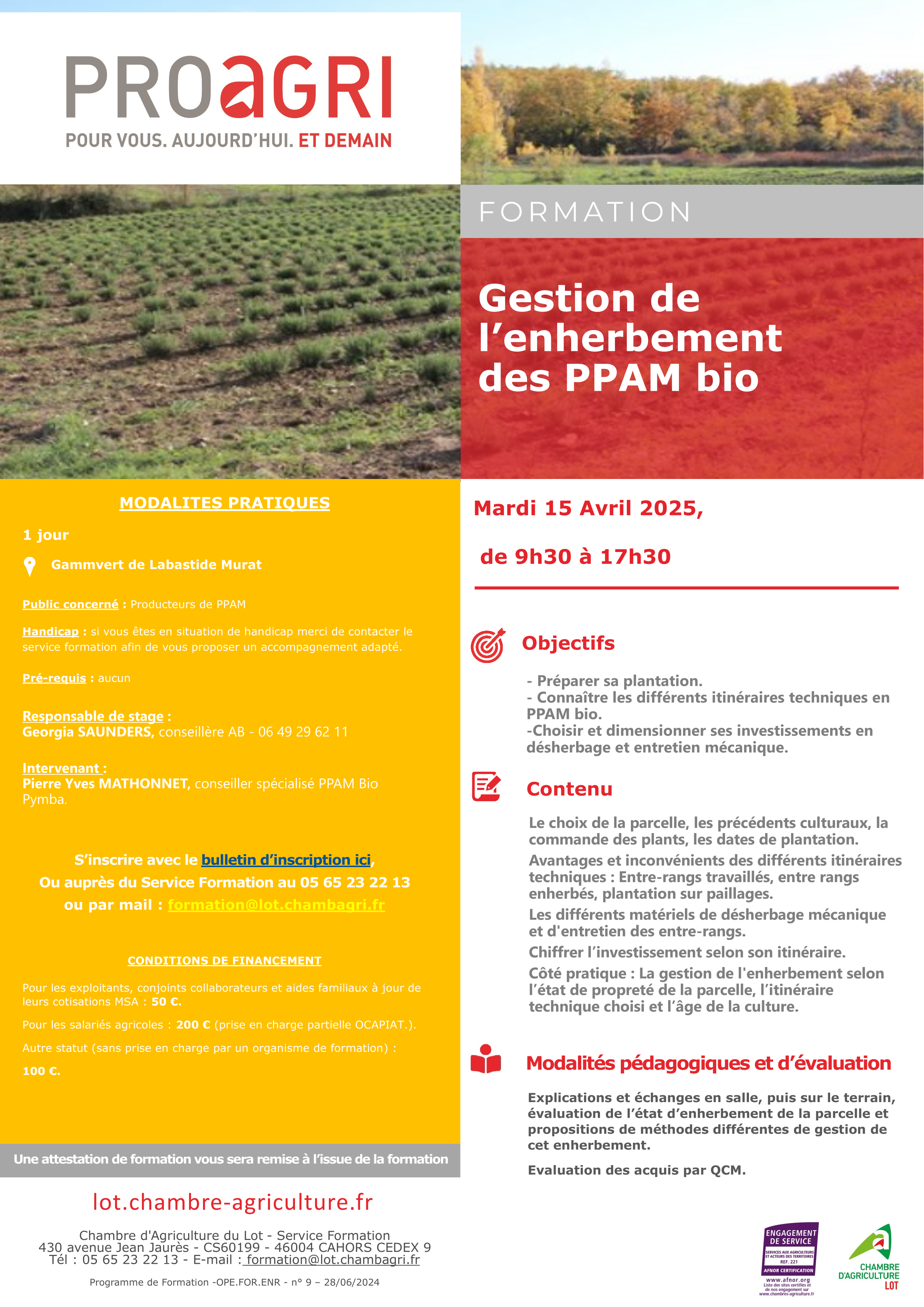 Actualité mars 7, 2025 Aucun Commentaire 216 Formation : Gestion de l’enherbement des PPAM Bio le 15 avril ✍️ TEST SIGNATURE