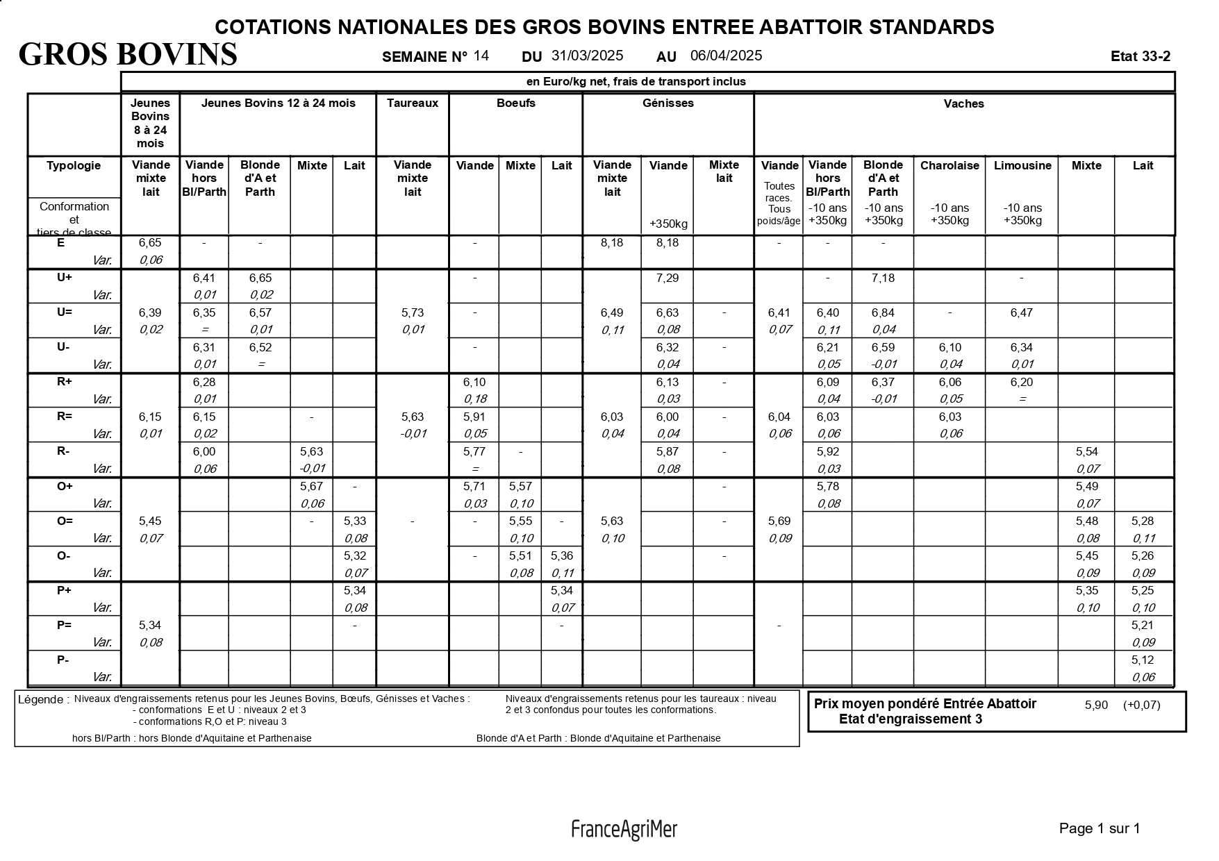 Agriculture avril 9, 2025 Aucun Commentaire 265 Cotations nationales des gros bovins : Semaine N°14 du 31 mars au 6 avril 2025 ✍️ TEST SIGNATURE