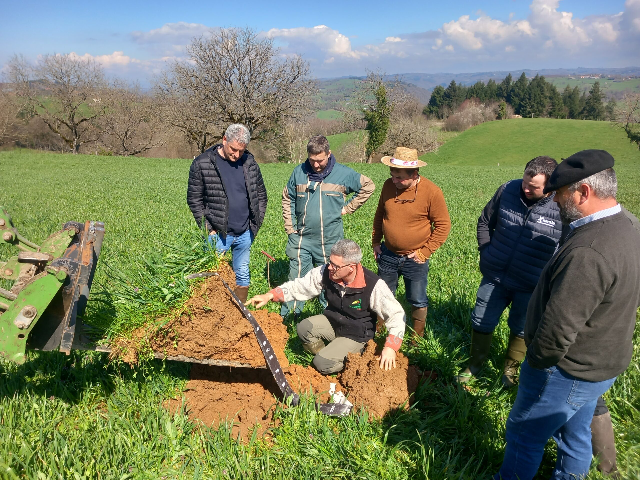 Grâce à l’intervention de Pierre MALIE, agronome et pédologue à la chambre régionale d’Occitanie et de Fabien BOUCHET-LANAT (Chambre d’agriculture du Lot), nous avons pu interpréter les 30 analyses de terre qui ont été réalisées sur nos fermes et faire le lien avec nos pratiques. Taux de matière organique, CEC…autant de critères qui permettent de mieux appréhender le bon fonctionnement des sols. La deuxième journée a été axée sur la réalisation de profils de sols sur différentes parcelles. Différents aspects agronomiques ont pu être abordés comme la structure des sols… Au total, ce ne sont pas moins de 9 parcelles qui ont été diagnostiquées.