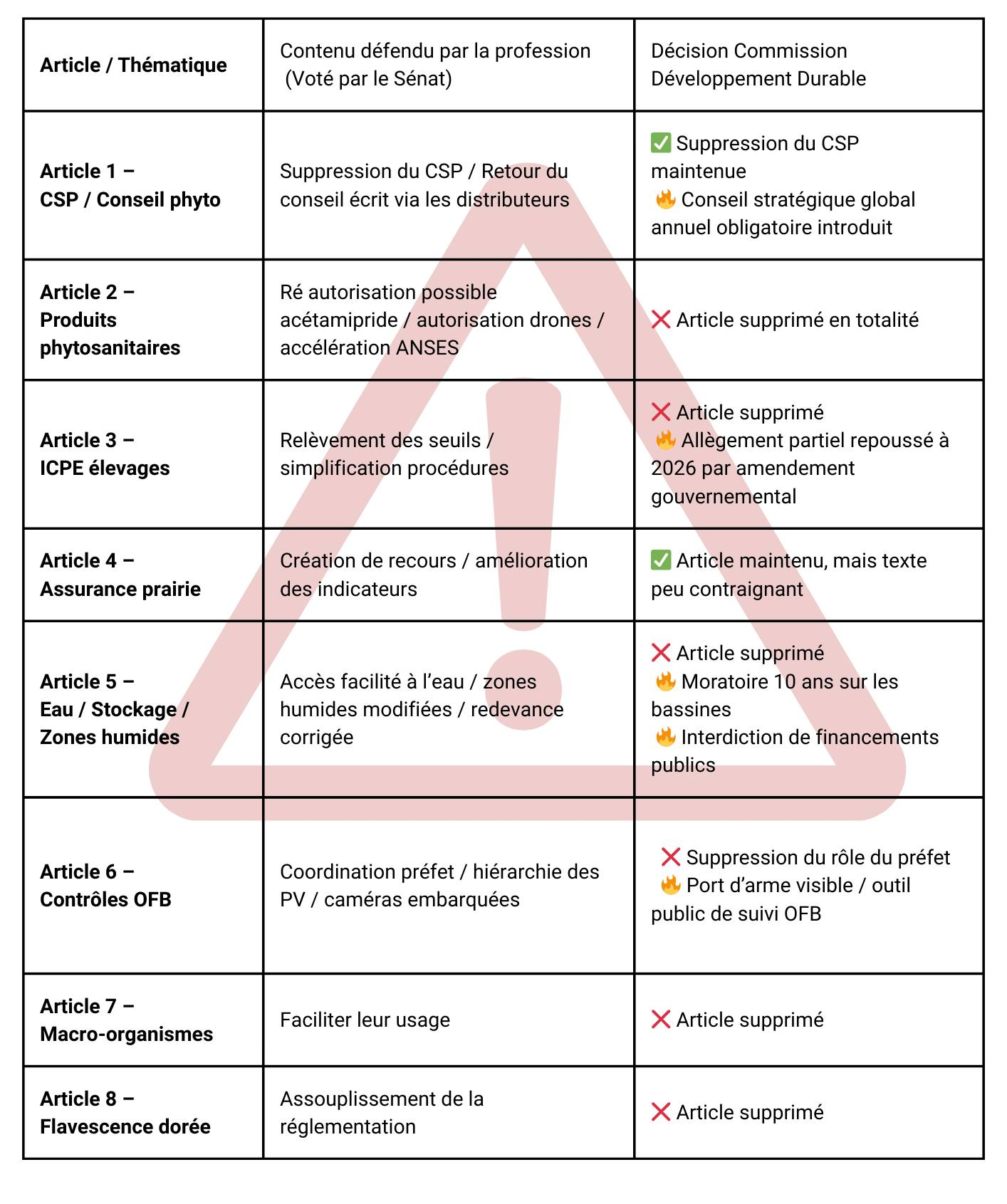 Pour la profession, l’objectif est clair : le texte doit désormais être adopté au plus vite et en tout état de cause en amont de la fin des travaux parlementaires de l’été. Pour cela, le Gouvernement doit annoncer immédiatement la date de la Commission Mixte Paritaire. Les agriculteurs, mobilisés au cours de ces derniers jours, perdent patience.